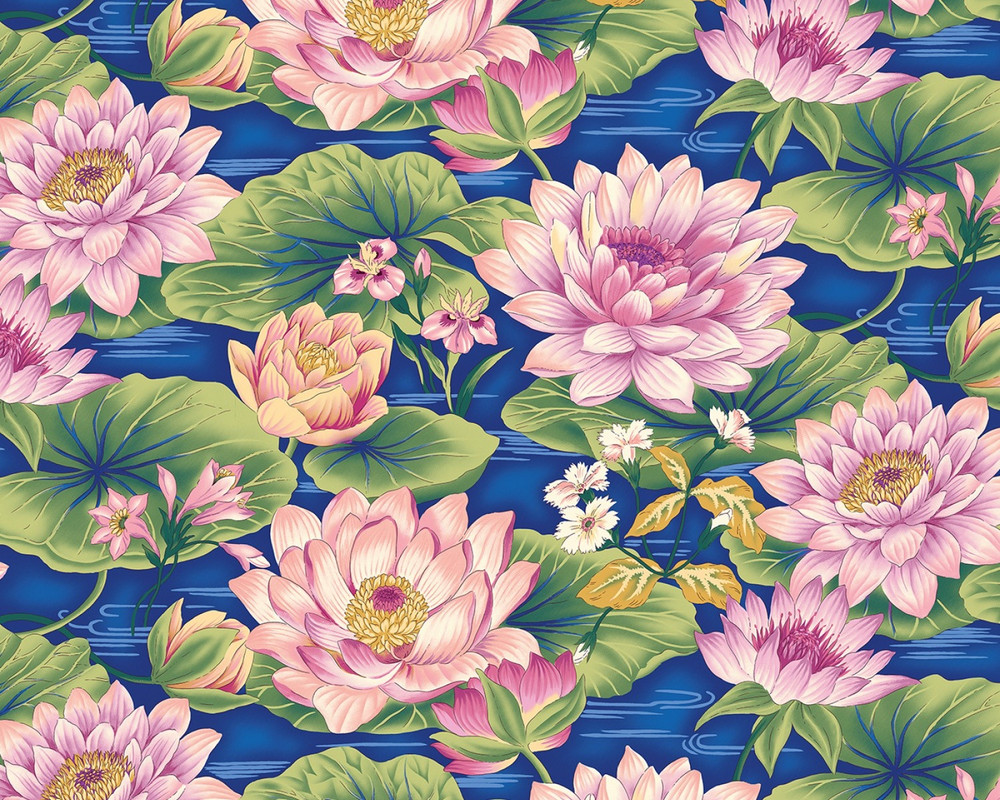 Click the button below to add the Flower Festival 2 - Water Lilies Blue from Benartex Fabrics to your wish list.