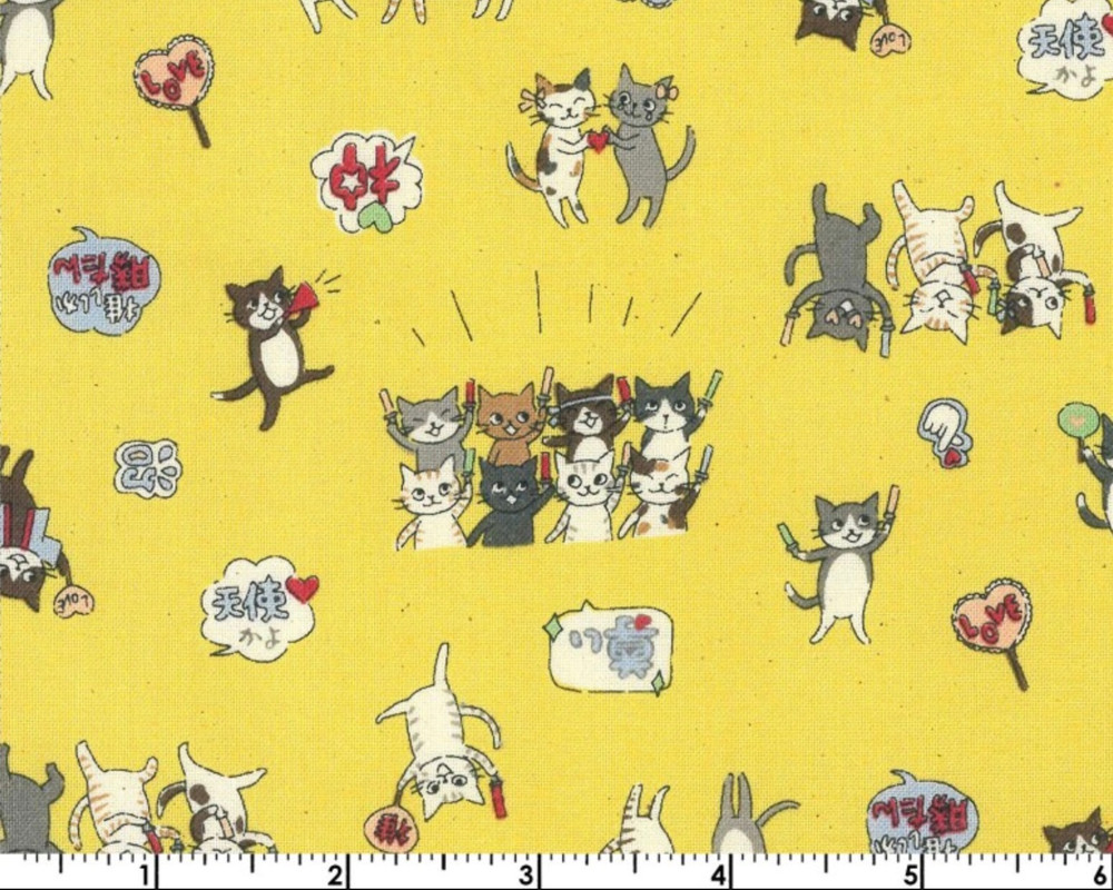 Click the button below to add the Funny Cats - Cats Having Fun Yellow from Kokka Fabrics to your wish list.