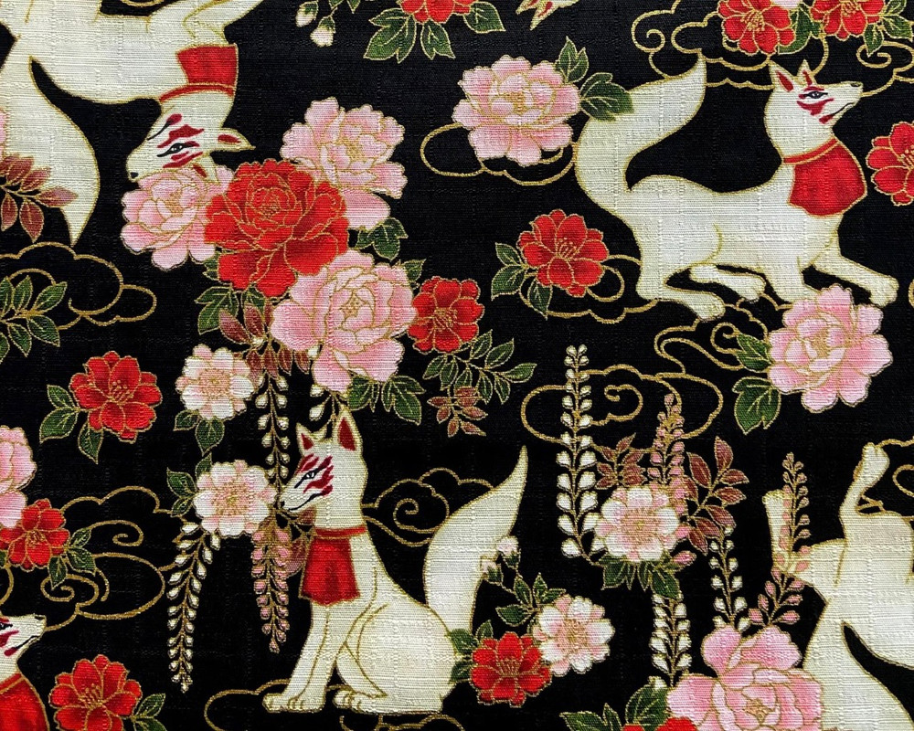 Click the button below to add the Goldfish and Inari DOBBY - Fox Floral Black from Cosmo Fabric to your wish list.