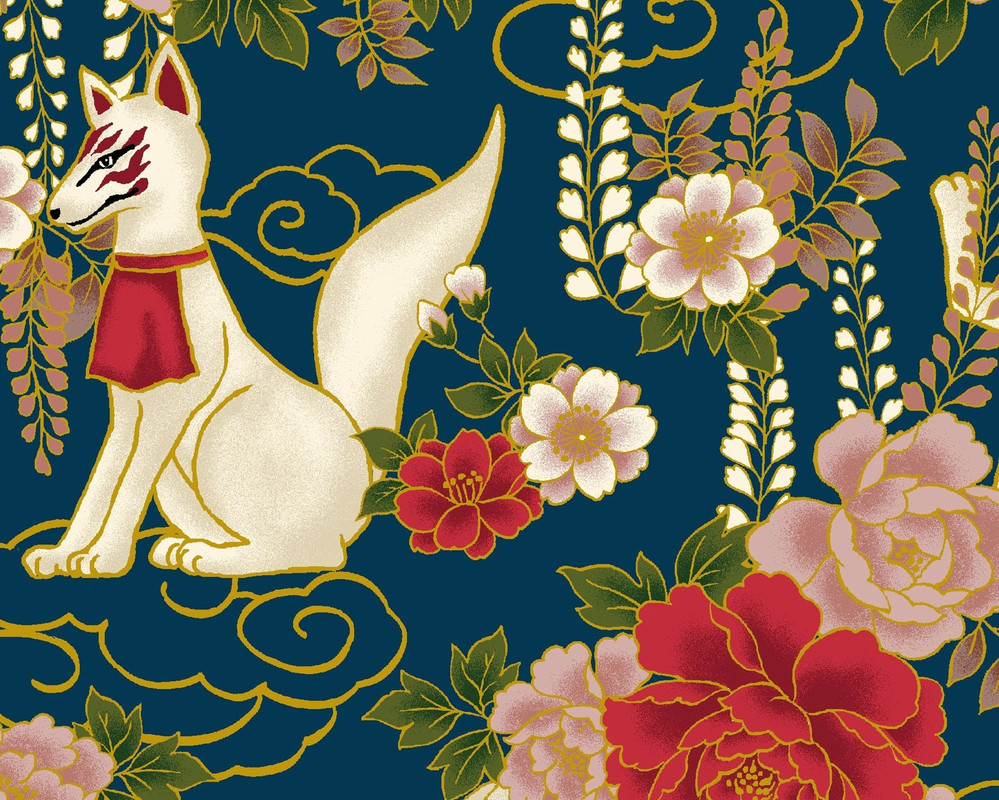 Click the button below to add the Goldfish and Inari DOBBY - Fox Floral Dk Blue from Cosmo Fabric to your wish list.