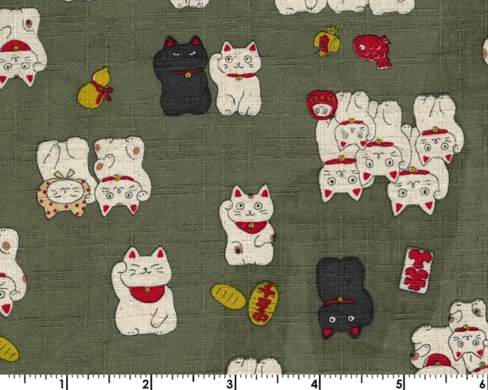 Click the button below to add the Happy - Cats DOBBY Olive Green from Kokka Fabric to your wish list.