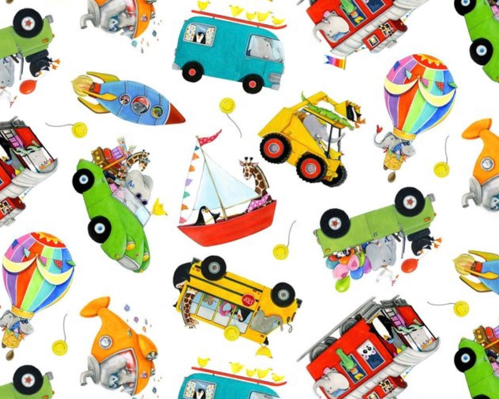 Click the button below to add the Let’s Take A Ride - Car Boat Bus Toss White from Elizabeth’s Studio Fabric to your wish list.