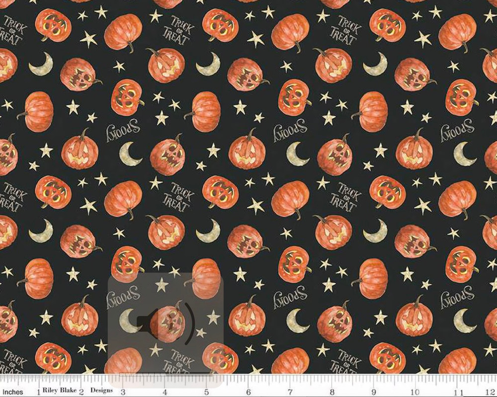 Click the button below to add the Trick or Treat - Pumpkin Moon Star Black from Riley Blake Fabric to your wish list.