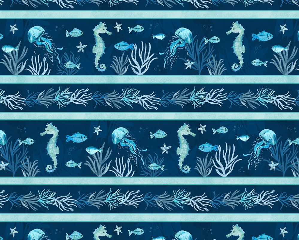 Click the button below to add the Underwater Wonders - Repeating Stripes Sea Creatures Blue from Wilmington Prints Fabric to your wish list.