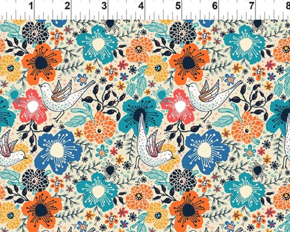 Click the button below to add the Whimsy - Floral Birds Beige from In The Beginning Fabric to your wish list.